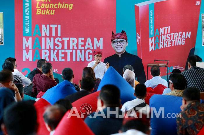 Surabaya, ArahJatim.com – Bupati Banyuwangi Abdullah Azwar Anas meluncurkan buku berjudul ”Anti-Mainstream Marketing: 20 Jurus Mengubah Banyuwangi” di Gramedia Expo, Surabaya, Senin (14/10/2019). Buku yang diterbitkan Penerbit Gramedia tersebut memaparkan 20 prinsip kreatif mengembangkan Banyuwangi dengan pendekatan-pendekatan tak lazim.