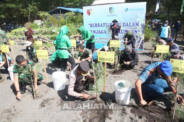 Banyuwangi, ArahJatim.com – Kabupaten Banyuwangi terus melakukan upaya konservasi lingkungan. Salah satunya, mencegah abrasi yang terus meluas, Forkopimda dan stakeholder terkait terus menggelar penanaman mangrove dan pohon cemara di sepanjang pantai Banyuwangi.