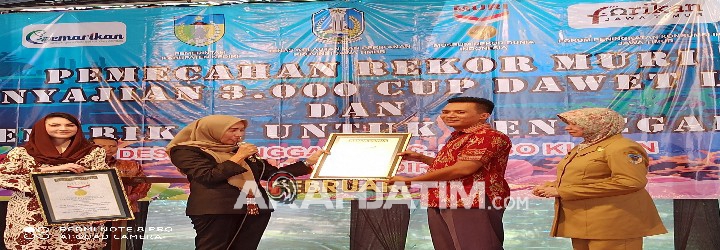 Kediri, ArahJatim.com – Guna Mencegah Stunting, Pemkab Kediri Menggelar Kampanye Gemar Makan Ikan, Untuk Anak-anak Tk Dan Juga Orang-tuanya. Tercatat Ada Tiga Ribu Lebih Cup Dawet Dari Olahan Ikan Lele Yang Disajikan Acara Tersebut Masuk Rekor Muri, Bahkan Juga Masuk Rekor Dunia.