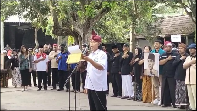 Upacara pengibaran bendera sang merah putih dalam rangka mensyukuri Hari Berdirinya Negara Kesatuan Republik Indonesia di Situs Ndalem Pojok Persada Sukarno Kediri berlangsung meriah, diawali dengan pagelaran tari kolosal, teater, santunan anak yatim, tali asih para veteran, kemudian dilanjutkan dengan ujuban dan selamatan Berdirinya Negara Kesatuan Republik Indonesia.*