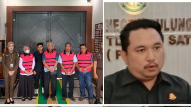 Tulungagung, Arahjatim.com – Kejaksaan negeri Tulungagung, akhirnya menetapkan empat tersangka dugaan korupsi uang milyaran rupiah. Penetapan itu berlangsung, Rabu,10/9/2025. Dalam keterangan persnya, kepala kejaksaan negeri Tulungagung, Tri Sutrisno, menjelaskan terkait penetapan kempat orang itu dalam dua pusaran kasus di dua lembaga. Kasus pertama adalah adanya dugaan korupsi di RSUD dr Iskak Tulungagung, terkait SKTM senilai 4.3 M, dan satunya adalah dugaan korupsi DD/ ADD di desa Tanggung kecamatan Campurdarat, senilai 1.5 M.