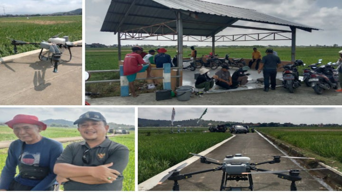 Drone penyemprot disewa dari pabrik penyedia alat dan pestisida. Langkah ini menjadi pilihan karena bisa menjangkau area luas dalam waktu cepat, sesuatu yang tak mungkin dilakukan dengan semprotan manual.