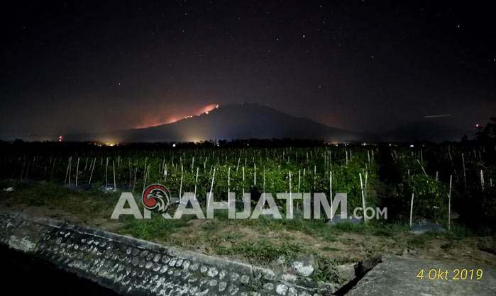 Banyuwangi, ArahJatim.com – Kawasan hutan di jalurĀ pendakian Gunung Raung perbatasan antara dua Kabupaten, Banyuwangi dan Bondowoso terlihat terbakar sejak Jumat (4/10/2019) siang. Bahkan hingga Sabtu (5/10/2019) dini hari, kobaran api yang membakar ilalang dan dahan pohon kering masih tampak jelas terlihat dari Desa Kalibaru Wetan yang terletak di lereng gunung setinggi, 3.200 meter diatas permukaan laut (MDPL).