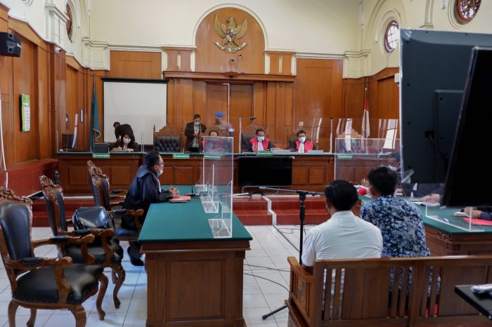 Dakwaan terhadap keduanya dibacakan oleh Jaksa Penuntut Umum (JPU) Winarko, dari Kejaksaan Tinggi Jawa Timur.
