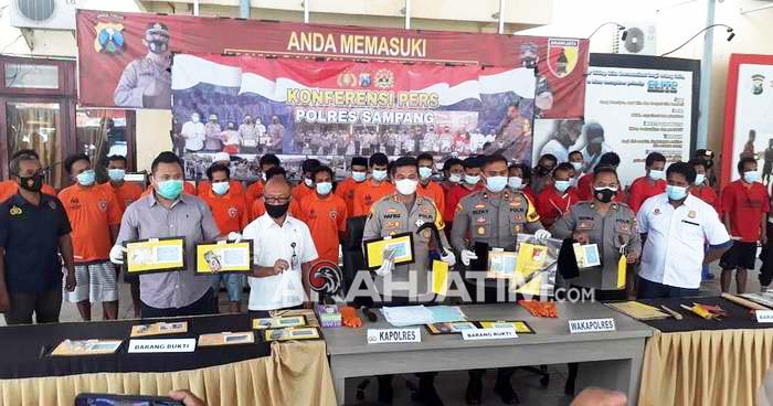Sampang, ArahJatim.com – Jelang bulan suci Ramadan, Kepolisian Resort (Polres) Sampang menggelar rilis pengungkapan kasus hasil Operasi Pekat Semeru 2021, di Mapolres Sampang. Ops Pekat Semeru 2021 digelar di wilayah hukum Polres Sampang antara tanggal 22 Maret hingga 2 April 2021. Dari hasil operasi tersebut petugas kepolisian berhasil mengungkap 33 kasus tindak pidana dan mengamankan 38 tersangka.