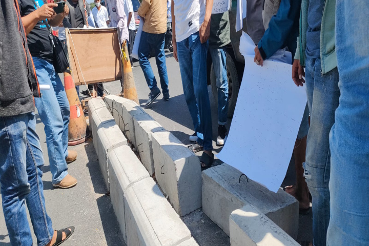 Setelah puas melakukan orasi, para masa aksi langsung meninjau lokasi pemasangan Kastin atau pembatas jalan yang berada di daerah acemanis kabupaten Pamekasan.