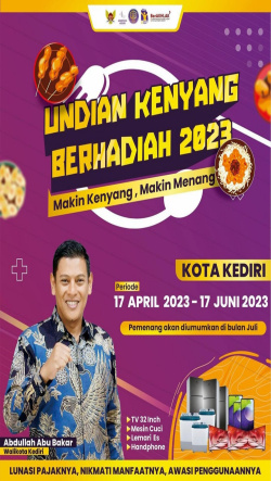 “Program ini bermula saat terjadinya pandemi banyak resto yang mengalami guncangan secara ekonomi. Supaya perekonomian bangkit dan omzet mereka naik, maka Pemkot Kediri melalui BPPKAD memberikan suatu program kegiatan pemulihan ekonomi akhirnya dibentuklah program Undian Kenyang Berhadiah,” jelasnya. Menurut Sugeng, program ini mampu menarik animo pengusaha resto cukup tinggi, sehingga pihaknya kembali menyelenggarakan Undian Kenyang Berhadiah tahun ini.