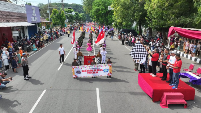 Kediri, ArahJatim.com – Pj Wali Kota Kediri Zanariah memberangkatkan Lomba Kirab dan Konser Drumband, Minggu (5/5). Lomba ini diikuti 10 grup drumband tingkat SD/MI, SMP/MTs, SMA/MA, dan Umum. Para peserta start dari Memorial Park dan finish di Halaman Balai Kota. Lomba ini menyedot antusias masyarakat, dimana di sepanjang jalan banyak masyarakat menyaksikan penampilan para peserta.