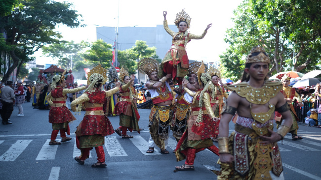 Penampilan kontingen dari PT Gudang Garam Tbk. menjadi momen puncak perayaan Hari Jadi Kota Surabaya (HJKS) ke-731. Tak ada yang berkedip saat mobil hias beserta iring-iringan Kerajaan Majapahit ini melintas di sepanjang rute Tugu Pahlawan hingga Balai Pemuda.