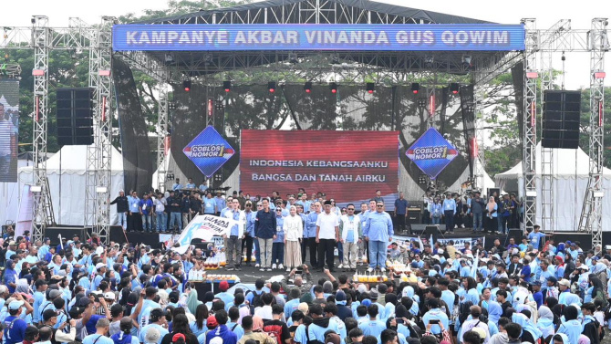 Mbak Vinanda – Gus Qowim, bahkan turut melantunkan lagu Rumah Kita, yang menjadi penutup rangkaian Kampanye Akbar bertajuk ‘Satu Untuk Semua, Semua Untuk Satu’ itu. Diikuti 21 anggota DPRD Kota Kediri dari partai pengusung dan tim pemenangan pasangan calon wali kota dan Wakil Wali Kota Kediri nomor urut 1 tersebut.
