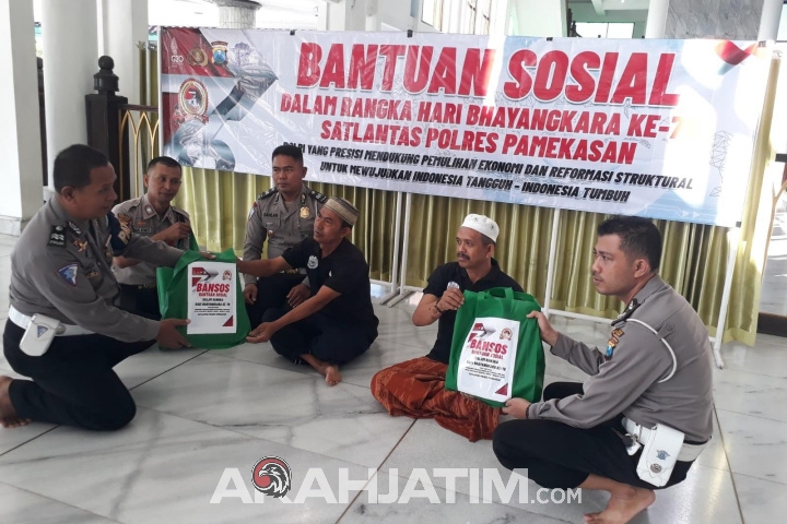 Kapolres Pamekasan AKBP Rogib Triyanto melalui Kasat Lantas AKP Mokhammad Munir menyampaikan, “Bakti sosial tersebut dilaksanakan dalam rangka rangkaian kegiatan menyambut Hari Bhayangkara Ke-76.