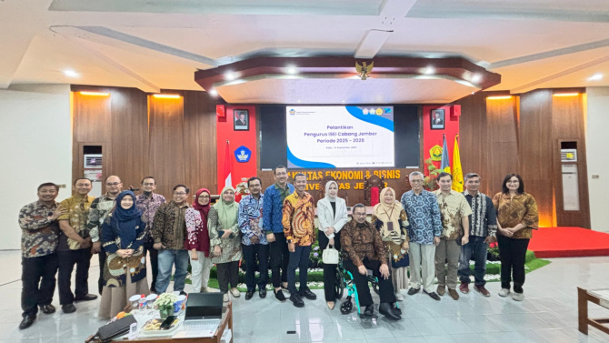 Jember, ArahJatim.com – Pengurus Ikatan Sarjana Ekonomi Indonesia (ISEI) Cabang Jember resmi dilantik. Pelantikan ini dilakukan secara virtual bersama dengan 14 cabang ISEI lainnya di seluruh Indonesia, bertempat di Ruang Ir. Soekarno Fakultas Ekonomi dan Bisnis Universitas Jember pada Rabu malam (10/09/2025).