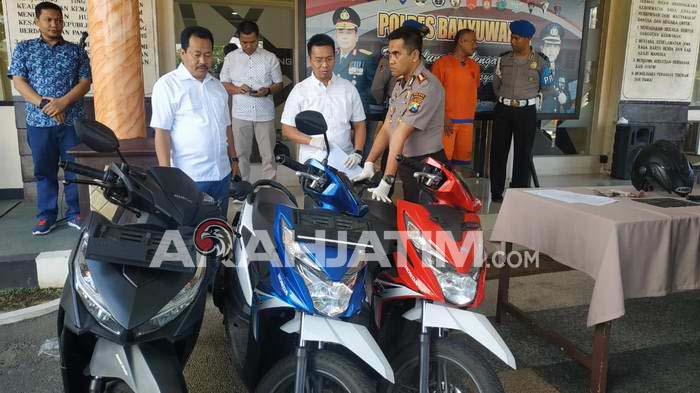 Kapolres menambahkan, dalam menjalankan aksinya tersangka selalu berkomplot dengan seorang rekannya berinial HD yang kini masih buron dengan peran berbeda. Satu orang mengawasi area tempat kejadian perkara (TKP) dan satu orang lainnya menjadi eksekutor. Selanjutnya sepeda motor hasil curian dibawa ke Jember untuk dijual ke seorang penadah. Beruntung barang bukti tiga unit sepeda motor yang sempat disimpan di rumah tersangka berhasil disita polisi.