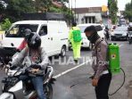 Polres Blitar Kota Semprot Disinfektan Setiap Kendaraan yang Masuk Kota Blitar