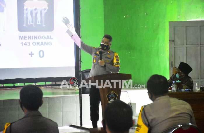 Blitar, ArahJatim.com – Guna mengantisipasi penyebaran virus corona dan memaksimalkan penanganannya, Kapolres Blitar AKBP Leonard M Sinambela menggelar pertemuan dengan tiga pilar di Kecamatan Kanigoro, Kabupaten Blitar, Jumat (22/1/2021).